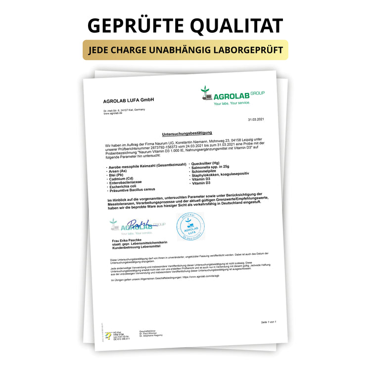Die empfohlene tägliche Verzehrmenge darf nicht überschritten werden. Nahrungsergänzungsmittel sind kein Ersatz für eine ausgewogene und abwechslungsreiche Ernährung. Für kleine Kinder unzugänglich aufbewahren.