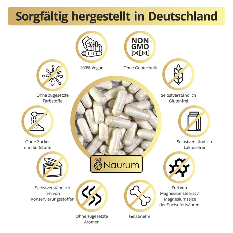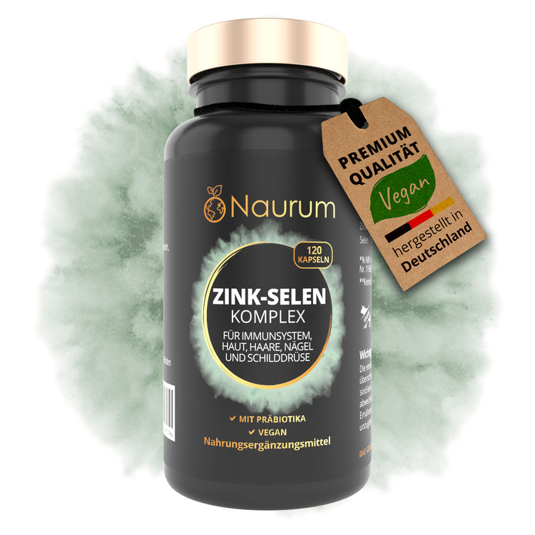 Zink ist ein essenzielles Spurenelement und für uns lebenswichtig. Nicht zuletzt auch deshalb, weil es nicht vom Körper selbst hergestellt werden kann. Zink ist wichtig für Deine Haut, Haare, Immunsystem, Knochen und die Wundheilung. Zink ist außerdem für die Aufrechterhaltung des Immunsystems von Bedeutung. Selen wird von Naurum mit Zink kombiniert, da beide Mineralstoffe wichtige Rollen im Immunsystem spielen und synergistisch zusammenwirken können. Eine ausreichende Zufuhr von Selen und Zink kann helfen, das Immunsystem zu stärken und Infektionen vorzubeugen.