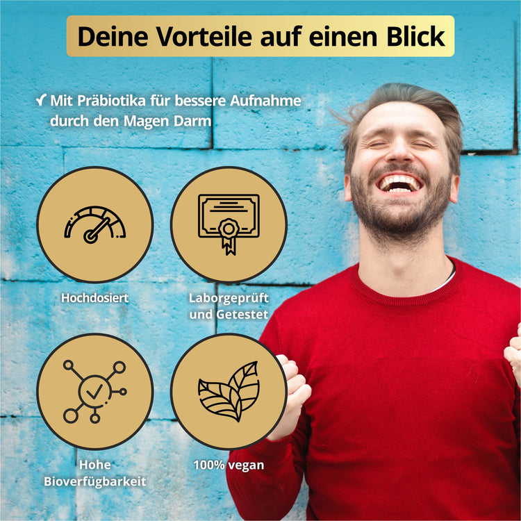 Die empfohlene tägliche Verzehrmenge darf nicht überschritten werden. Nahrungsergänzungsmittel sind kein Ersatz für eine ausgewogene und abwechslungsreiche Ernährung. Für kleine Kinder unzugänglich aufbewahren.